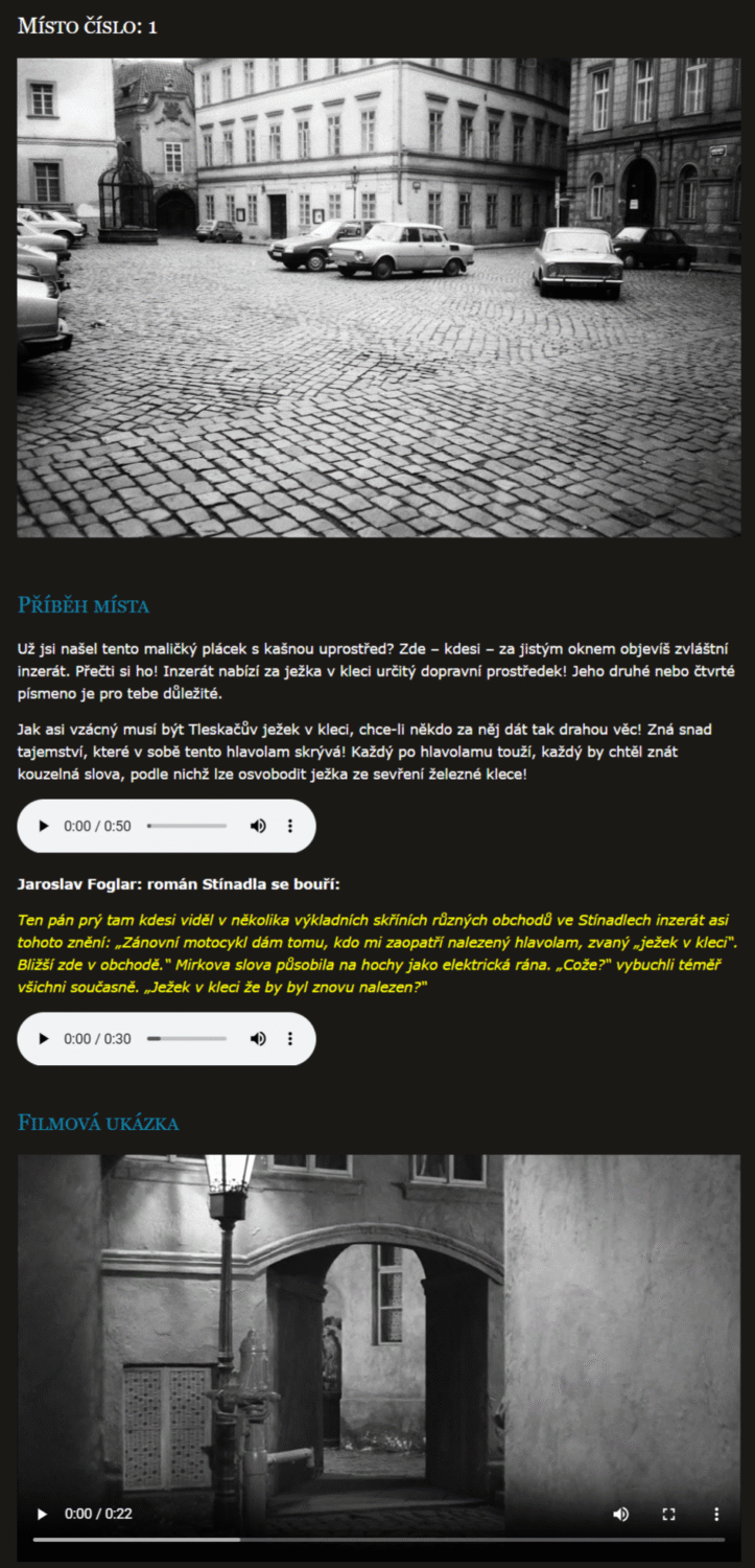 Zvukové verze příběhu místa a textu z románu o RŠ.