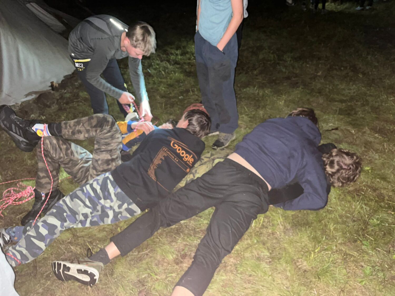Kromě sportovních aktivit se během neděle uskutečnilo i školení první pomoci, které započalo mým nafingovaným omdlením. Táborníci se sice po nějaké době pokusili situaci vyřešit, ale úplně veleslavně to neskončilo. Nikdo v ten moment situaci nebral moc vážně. Následně byli ale během přednášky všichni poučeni o tom, co v takovém případě dělat, a že v takové situaci mohou skutečně někomu zachránit život. Zjistili, jak přijít na to, zda je člověk v bezvědomí, zkusili si záklon hlavy pro uvolnění dýchacích cest, postup při zastavování krvácení nebo správný způsob provádění srdeční masáže. Nejdůležitějším ovšem zůstává mít na paměti, že hlavní je vůbec zareagovat a zavolat dotyčnému pomoc. Doufám, že pokud se někdo do takové situace nedejbože dostane, vzpomene si na to a pomoc skutečně zavolá.