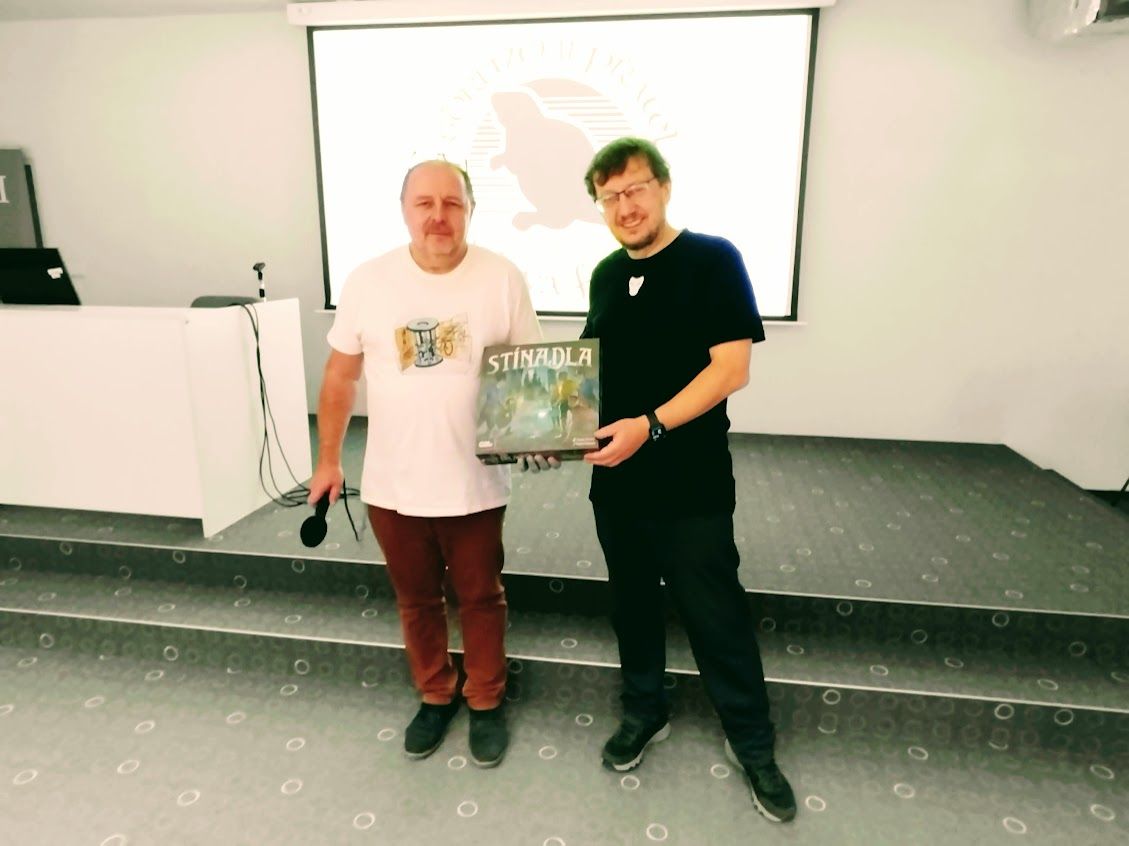 Doprovodný program dále nabídl představení nové deskové hry „Stínadla“ od Vlaadi Chvátila, kde nám autor poodhalil některé detaily vzniku deskovky pro děti i dospěláky. Následovala celá řada dotazů od účastníků z publika. Cílem hry je vydat se po stopách záhad, které skrývá staré město. Hráči se pohybují po Stínadlech, plní různé úkoly a snaží se nebýt polapeni nebezpečnými Vonty. Oproti knižní předloze se děj deskové hry může v některých částech vyvíjet jinak, podle toho, jakou zvolí hráči strategii. K zakoupení je v knihkupectvích, či hračkárnách v ceně okolo 1000,- Kč.